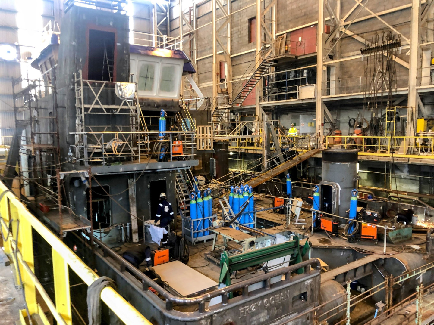 Den store dokkhallen er bygd sammen med seksjonshallen og utrustningsverkstedene, slik at hele byggeprosessen kan skje innendørs. Det sikrer høyere kvalitet, bedre finish og kortere transportveier, som gir rasjonell produksjon med maksimal kontroll i byggeperioden.